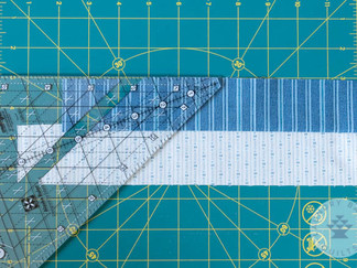 From fabric A-9848-LB, cut 2 squares 18-1/2" x 18-1/2". Then cut once diagonally to create 4 half-square triangles (wait to watch our LIVE video for tips on fussy cutting this beautiful fabric).