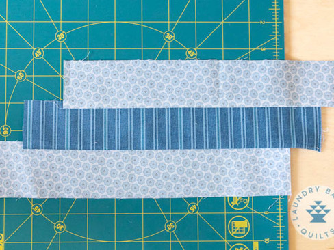 For my binding, I cut 2-1/2" x WOF strips of Bluebird fabric A-9845-B to finished the edge of the quilt,